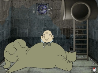 Zentrales Rätselelement in 'Full Pipe' ist der Tausch von Gegenständen und das scheinbar ohne Sinn, also Trial und Error, wie der fachmännische Tester sagen würde. Es ist anfangs überhaupt nicht ersichtlich, warum der Dude einer Figur eine Schublade gibt, die sich diese aufsetzt und dem Dude dafür ihre Sonnenbrille gibt. Da verzweifelt der logisch denkende Spieler schon mal, vor allem, wenn die Gegenstände später wieder zurückgeholt werden und dann irgendwo erneut eingetauscht werden. Doch das ist nicht das einzig frustrierende am Rätseldesign. Es sind die zahlreichen Minispiele, die anscheinend den Tauschhandel auflockern sollen, die aber erfolgreich absolviert werden müssen, um vorwärts zu kommen. Obwohl ohne Hotspot-Funktion ausgetstattet, gibt es bei den Spielen eine kleine Hilfestellung, die aber wenig hilfreich ist. Zum Beispiel muss der Dude sich auf einer Schaukel per Mausklick hin und her bewegen und im richtigen Moment abspringen, um eine Röhre zu treffen, durch die er dann in einen neuen Raum gelangt.