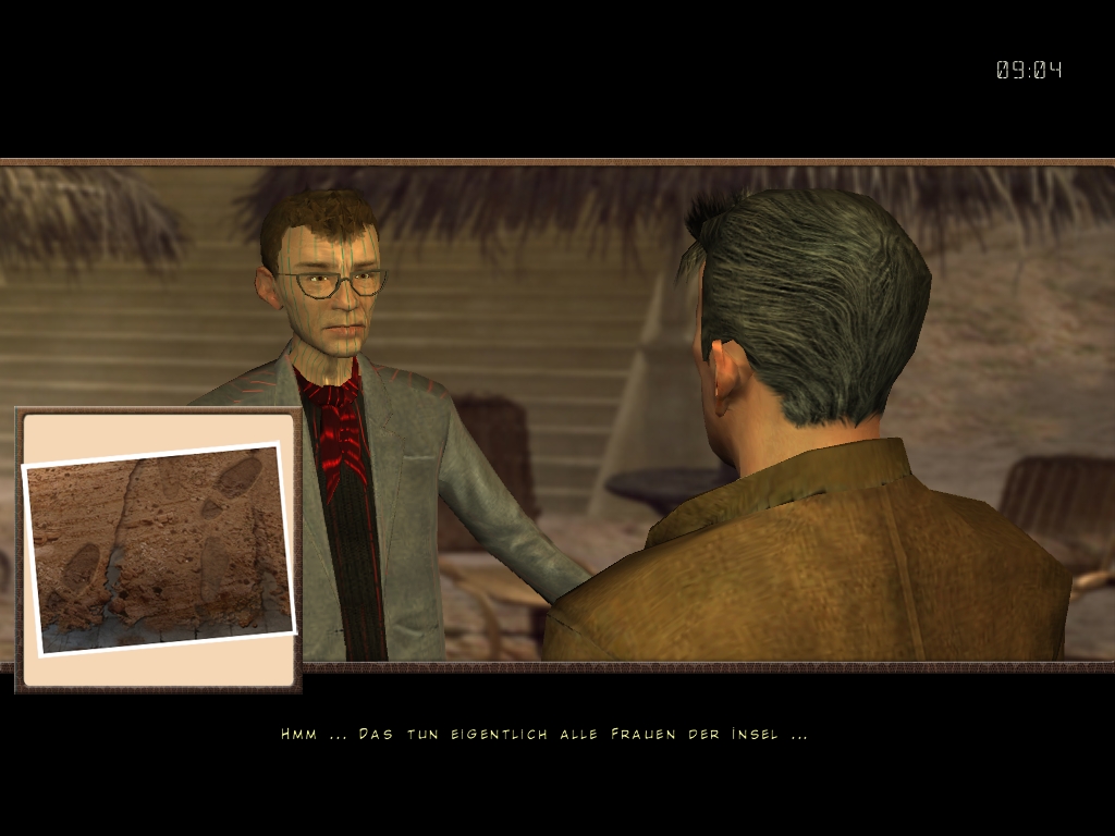 Ich muss was das angeht auch sagen, dass genau diese tiefgründigen NPCs und die spannende Handlung das Spiel eben wirklich gut machen. Unterm Strich muss man auch beachten, dass es sich um ein Krimi-Adventure handelt und da gehört es für mich auf jeden Fall zu den Besseren. Zu einem Krimi-Adventure gehört für mich aber eben auch alles das, was in Sinking Island vorhanden ist, also die Dialoge, das Herumschnüffeln in Dokumenten und das Suchen, Finden und Vergleichen von Beweisen. Alles das bringt Sinking Island mit. Und das sind auch einige der Kritikpunkte beim Treff.