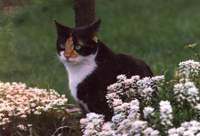 Mimi (die dreifarbige) war meine allererste Katze. Leider ist sie mittlerweile tot, hat aber ein ganz passables Alter für ne Freigängerin erreicht.