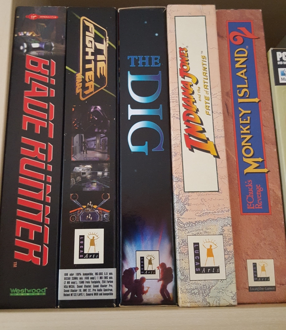 Die Kartons der übrigen LucasArts-Spiele (mit ausnahme de Flugsims habe ich nichts ausgelassen) stehen in einem Schrank im Keller.