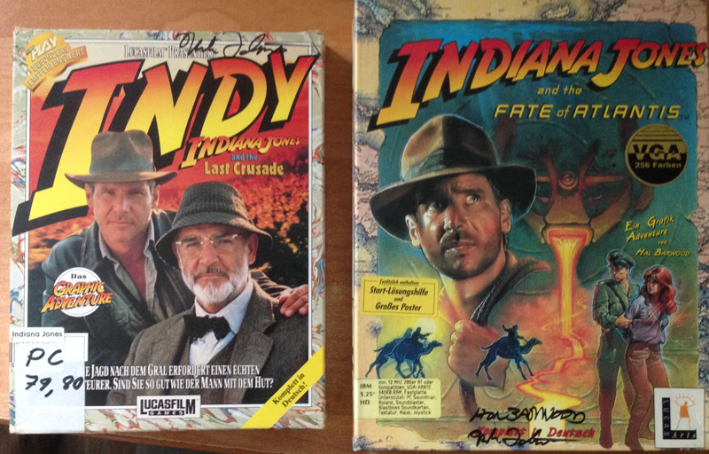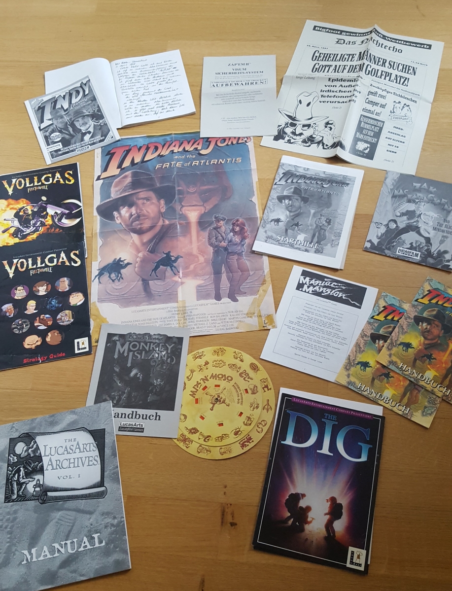 Die Schachteln sind alle noch komplett mit der Zeitung von Zak oder dem Tagebuch von Indy 3. Nachträglich gekauft habe ich Monkey Island und Loom (beides via ebay). Von Loom hatte ich nur eine Heft-CD und von Monkey Island die CD-ROM-Version als OEM, also nur mit Handbuch. Das sah im Regal aber übel aus, weswegen ich die mal nachgekauft habe.