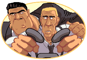 Nestor und Bolus Die beiden Handlanger von Ripburger. Während Bolus mehr der Hau-drauf-Typ für grobe Arbeiten ist, kommt Nestor eher als schleimiger Intelligenzbolzen zur Geltung. Die beiden würden für Geld und Macht alles tun. |