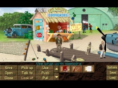 Für die Benutzeroberflächen im Adventure sind seitens AGS eigentlich keine Grenzen gesetzt: Die SCUMM-Steuerung aus den klassischen LucasArts-Adventures lässt sich ebenso realisieren wie eine Steuerung über Texteingabe wie in 'Larry 1'. Standardmäßig ist eine Benutzeroberfläche à la 'Leisure Suit Larry V' ausgewählt. Es wird sogar die Option angeboten, Benutzeroberflächen als Templates in sein Spiel zu importieren oder zu exportieren. Diese Funktion ist nicht nur für Benutzeroberflächen vorhanden, auch Räume und Scripts können als Module im Editor exportiert und importiert werden.