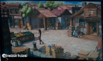 Bei 'Wizarbox' erwarten wir eigentlich nicht besonders viel. 'Captain Morgane and the golden Turtle' klingt eher wie ein Spiel für Kinder, bis uns dann ein Licht aufgeht: War Captain Morgane nicht eine Figur aus 'So Blonde'? Bitte nicht nochmal ein Adventure mit Sunny Blonde... Doch was wir dann zu sehen bekommen, überrascht und überzeugt uns gleichermaßen: Das Spiel sieht klasse aus, hat keine Ladepausen, spielt sich gut und könnte sogar eine interessante Geschichte haben. Warum war 'So Blonde' nicht so? Wir wissens nicht, Wizarbox verrät uns, dass man sich die Kritik zu Herzen genommen hat und jetzt auf der Suche nach einem Publisher ist. Wir drücken die Daumen und machen uns auf den Weg zu Prime Games, natürlich nicht ohne einen selbstgemachte Screenshot.