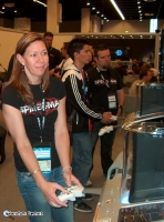 Die nun folgende kurze Lücke zum nächsten Termin nutzt Tobias zum Quängeln: "Ich will unbedingt noch zu LucasArts". Also macht sich das Team auf zum Stand von Activision. Kurzfristig ist natürlich nichts mehr frei, aber wir können uns 'Spider Man Dimensions' zeigen lassen. Das Spiel interessiert uns zwar nicht so sehr, aber vielleicht tut sich ja eine Möglichkeit auf, LucasArts auf die Pelle zu rücken. Tut sich natürlich nicht. Dafür ist die Entwicklerin von 'Spider Man' sehr freundlich und wir positiv vom Spiel überrascht.