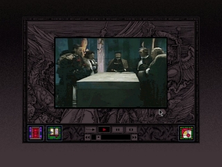 Und hier wären wir auch schon bei der ganz großen Schwäche von 'Dracula Unleashed'. Auf die Vorzüge der gelungenen Filmumsetzung und der Atmosphäre werde ich später noch zu sprechen kommen, aber der spielerische Teil von 'Unleashed' ist leider ganz einfach schlecht. Aber wie sieht das Gameplay überhaupt aus? Nun, wir klicken uns aus Ego-Perspektive durch statische Screens (Wir können uns nicht bewegen), in denen es im Normalfall nur zwei Handlungsmöglichkeiten gibt , entweder wir klicken die Tür einer Location an, oder wir besteigen eine Kutsche, die sich an jedem Schauplatz befindet. Wir reisen von einem Ort zum nächsten und warten darauf, dass sich die jeweils nächste Videosequenz abspielt. Bei jedem Schauplatz den wir in der Außenansicht anklicken, startet eine solche Sequenz.
