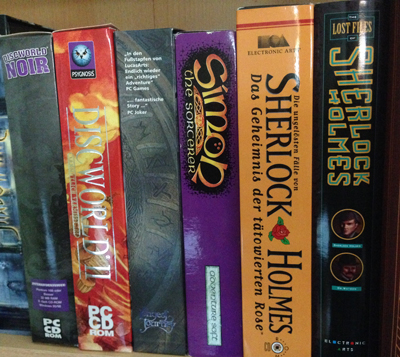 Auf der anderen Seite in dem Regal stehen dann auch die Phantasmagoria-Spiele, Police Quest 1 (leider in der Günstig-Box) und Gabriel Knight 1-3.