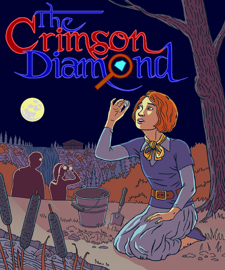 'The Crimson Diamond' ist ein Textparser-basiertes Mystery-Abenteuerspiel, in dem Du in die Rolle der Amateurgeologin und Detektivin Nancy Maple schlüpfst. Folge Nancy auf ihrer Reise in die Geisterstadt Crimson, um die Entdeckung eines enormen Diamanten in der Gegend zu untersuchen.