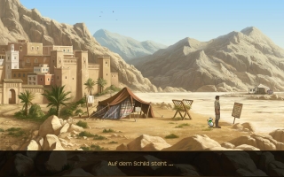 Ganz großes Kino: 'Lost Horizon' ist wie ein echter Abenteuer-Film inszeniert. Im Spiel selbst warten zahlreiche Action-Szenen, Cut-Szenes und wirklich durchdachte Trailer, die den Spielfluss erheblich auflockern. Diese kann man sich übrigens extra noch mal im Hauptmenü einzeln anschauen. Mehr als nur ein Hingucker sind auch die detailreichen, handgezeichneten 2D-Hintergründe, die das noch so kleinste Detail exakt wiedergeben. Wenn Fenton sich mal in Marokko im Laden von Prof. Hayes aufhält, bekommt das Auge einen wahren Flash an Farben, Formen und Detailreichtum. Je nach Systemvorrausetzungen können Schatten und animierte Texturen zu- oder abgeschaltet werden. Aber wer kann, der sollte sich das antun, denn es ist herrlich, wie hier mit Licht und Schatten und den noch so kleinsten beweglichen Details gearbeitet wurde. Leider fehlt diese Hingabe bei den Charakteren. Diese passen sich in ihrer 3D-Darstellung nicht so gut an die Hintergründe an und bei Großaufnahmen fällt die fehlende Mimik deutlich negativ auf. Mal abgesehen davon, dass sich die Lippen nicht immer ganz synchron zum gesprochenen Text bewegen und die Figuren den Bildern im Dialogfenster nur bedingt ähneln. Ansonsten wirken die Bewegungen der Charaktere im Spiel durchaus flüssig und hinterlassen einen guten Eindruck.