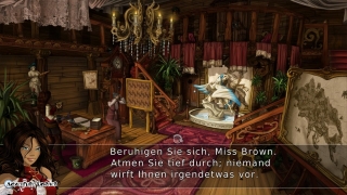 Logik ist dann erneut das große Stichwort, wenn es an die Denkaufgaben geht, denn auch in 'Captain Morgane' wird wieder ganz klassisch und auf Genre-Standard geknobelt. So sackt die Protagonistin natürlich erst einmal alles ein, was ihr bei dem Abenteuer als nützlich erscheint, um die Gegenstände daraufhin im Inventar miteinander zu kombinieren oder bei Bedarf an entsprechenden Stellen wieder einzusetzen. Nur selten ist mehr Kombinationsfähigkeit gefragt, um beispielsweise aus den in der Umgebung verstreuten Hinweisen eine Kombination für einen Wandtresor herauszufinden oder während Dialogrätseln die richtige Reihenfolge der zur Verfügung stehenden Antworten zu wählen. Insgesamt bleibt der Schwierigkeitsgrad derartiger Denkaufgaben allerdings sehr überschaubar, da sich auch die benötigten Hinweise und Objekte in der Regel bereits in unmittelbarer Reichweite befinden und die Lösung somit fast schon auf der Hand liegt. Abgesehen vom gemäßigten Schwierigkeitsgrad sind die einzelnen Aufgaben aber oftmals auch einfach nur belanglos bis teilweise sogar arg konstruiert. Wenn Morgane für ihre Mutter den Hausputz erledigen muss, hat das mehr was von einem Versuch, die Spielzeit von ca. acht Stunden ein wenig zu strecken. Andererseits sind bestimmte Kombinationen schlichtweg zu umständlich, so kann ein Tuch etwa nicht direkt in einem mit Wasser befülltem Krug angefeuchtet werden, sondern der Krug ist zuvor erst noch in einen Eimer umzufüllen. Unlogisch wird es aber spätestens dann, wenn Morgane einen Gegenstand zwar nicht nehmen kann, weil der Noch-Besitzer sie dabei beobachtet, ersatzweise aber unbehelligt am gleichen Objekt herummanipuliert, ohne dass es irgendjemanden stört.