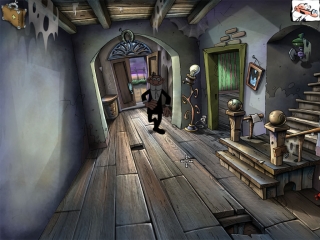 Auch der Wechsel zwischen den beiden Spielcharakteren erweist sich als sehr einfach. Mit einem Klick auf das Bild von Fred oder Jeff in der rechten oberen Ecke des Monitors kann man zum anderen Spieler wechseln. Es ist allerdings nicht möglich Gegenstände zwischen den beiden Charakteren auszutauschen. Dies könnte sich vor allem im Multiplayermodus als etwas hinderlich erweisen. Dazu aber später mehr. Für ungeduldige Spieler lassen sich Gespräche und Zwischensequenzen per Mausklick ganz einfach abbrechen, während unsere Helden per Doppelklick auf einen Ausgang direkt in den nächsten Raum wechseln. Dafür gibt es aber keine Möglichkeit die Animation innerhalb eines Raumes zu beschleunigen oder abzubrechen.
