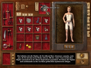 Das erste Problem, vor dem Madeleine steht: Sie muss eine Verkleidung finden, damit sie wie ihr Bruder aussieht. Dazu muss sie auch lernen, seine Stimme zu imitieren und ihre Hautfarbe der seinen anpassen. Durch diese recht leichten Anfangsrätsel lernt der Spieler schnell, worauf es bei 'Nostradamus – Die letzte Prophezeiung' ankommt. Gegenstände lassen sich mit wenigen Ausnahmen schnell finden und das dreiteilige Inventar füllt sich auch schon mal bis zum Äußersten. Doch Madeleine muss auch einmal gesammelte Gegenstände bearbeiten. So findet sie eine Perücke, die zuerst gekürzt werden muss. Aus den Überresten bastelt sie sich einen Bart. Dabei kommt ihr Handwerkzeug, bestehend aus Lupe, Feder, Zirkel, Skalpell, Pinzette und Schere zum Einsatz. Nachdem sie sich das Kostüm also zurechtgemacht hat, bekommt sie die Aufgabe, eine Tönungscreme anzurühren und lernt so auch gleich die Arbeit im Labor.
