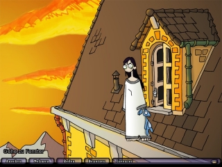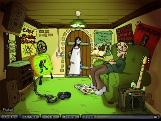 Sensationelle 20 Stunden an Sprachaufnahmen sollen sich offiziell in Edna bricht aus befinden. Nachgezählt habe ich zwar nicht, aber das Gesamtergebnis in Sachen Sound ist einfach nur beeindruckend. Quasi zu jedem anklickbaren Hotspot steht uns ein eigener Kommentar zur Verfügung, Standardkommentare a la "Das geht so nicht" braucht der Spieler hier nicht zu erwarten. Selbst zu völlig irrelevanten Hotspots hat Edna ihre individuelle Meinung. Doch auch Harvey können wir als Inventargegenstand mit der Außenwelt kombinieren und gerade seine Sichtweise der Dinge ist oftmals mehr als amüsant. Gerne stellt er Theorien auf, was man alles mit den angeklickten Items anstellen könnte, oder was für skurrile Wahrheiten sich hinter selbigen verstecken könnten.