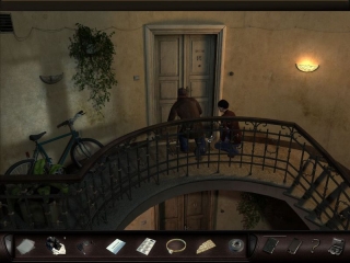 Die Handhabung entspricht komplett der des ersten Teils: Rechts unten am Bildrand befinden sich Tagebuch, Handy (das während des Spiels so gut wie nie benötigt wird), die Hotspot-Anzeige und das Optionsmenü. Ebenfalls am unteren Bildschirmrand finden wir unser Inventar, indem wir manche Gegenstände per Linksklick manipulieren können, z.B. dann, wenn es darum geht, eine Dose in unserem Gepäck zu öffnen. Per rechter Maustaste können wir uns die Nahansicht eines Gegenstands anzeigen lassen, in der Nicole meist einen kurzen Einzeiler serviert. Um Gegenstände kombinieren zu können, dürften wir uns allerdings nicht in der Nahansicht befinden, warum… das weiß kein Mensch. Nicole dirigieren wir per Linksklick durch die Gegend, nach doppeltem Klick legt die Dame einen Zahn zu. Fahren wir mit dem Maussymbol über einen Gegenstand, wird uns angezeigt in welcher Form wir mit ihm interagieren können. Können wir ihn betrachten, zeigt sich uns ein Augen-Symbol, woraufhin wir mit der rechten Maustaste das Item inspizieren. Können wir einen Gegenstand nehmen, oder versuchen zu nehmen, wird uns dies per Hand-Symbol gezeigt, woraufhin wir die linke Maustaste betätigen, gleiches gilt für weitere Interaktionsmöglichkeiten, wie z.B. dem Öffnen eines Schrankes.