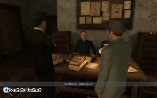 Das Whitechapel 1888 nicht zu den besseren Wohnvierteln Londons gehörte, wird spätestens beim Betrachten der Grafik klar. Egal, ob Holmes am Tage oder bei Nacht durch die Gassen streicht: Das Viertel bietet ein ewiges Grau in Grau. Sicher mag es damals dort wirklich so ausgesehen haben und das Spiel schafft es dadurch auch, für etwas schaurige Atmosphäre zu sorgen. So ist es direkt eine Wohltat, in andere, hellere Gegenden, wie den Buchladen oder die Bakerstreet zu kommen. Übrigens bietet das Spiel alle gängigen Auflösungen bis 1680 x 1050 an. Dennoch wirkt die Grafik etwas altbacken, was nicht zuletzt an den etwas hölzern daherkommenden Charakteren liegt, denen man überall in den Straßen begegnet. Trotzdem erscheinen Londons Straßen und Gaststätten etwas leer. Daran vermag auch der Soundtrack nichts zu ändern, der sich dann und wann dezent im Hintergrund hält und eigentlich nicht weiter auffällt. Ganz anders sieht es bei der Vertonung aus. Koch Media, der für die deutsche Umsetzung verantwortliche Publisher, hat für gute Sprecher gesorgt, die die Geschichte um den Meisterdetektiv und den Serienmörder mit Leben füllen. Die teils langen Dialoge wurden stets passend betont und verraten genügend Hinweise, um im Fall voranzukommen. Einziger Kritikpunkt an den Dialogen: Rätsel gibt es hier nicht. Die Multiple-Choice-Auswahl dient lediglich dazu, die Themen nach und nach abzuarbeiten oder erneut anzuhören, ehe der Punkt „Verabschiedung“ erscheint.
