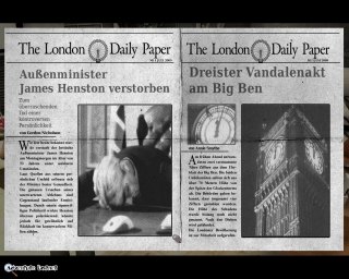 London ist nicht nur die Hauptstadt Englands, sondern auch ein ganz außergewöhnlicher Fleck der Erde mit vielen beeindruckenden Sehenswürdigkeiten. Fast genauso beeindruckend ist von der ersten Sekunde an die optische Präsentation von '15 Days', beginnend mit dem spektakulären Intro und fortgesetzt mit den wunderschönen Szenerien und den sehr real wirkenden Zwischensequenzen. Besonders bei den vorgerenderten Umgebungsgrafiken macht House of Tales so schnell niemand was vor, hier befindet sich die visuelle Darstellung auf absolutem Spitzenniveau, wirken schon beinahe fotorealistisch. Auch im Hintergrund erscheinen viele Szenen lebendig, so bewegen sich Fahnen, Wäscheleinen oder die Blätter der Bäume im Wind oder ein Boot am Anlegesteg der Themse geht zusammen mit dem herrlich animierten Wellengang auf und ab. Auch die möglichen Auflösungseinstellungen können sich durchaus sehen lassen. Von 1024x768 bis 1280x1024 Bildpunkten sind dazwischen so ziemlich alle gängigen Auflösungen einstellbar. Mit 1280x800 ist gar ein Breitbildformat die empfohlene und somit Standard-Einstellungen. Entscheidet man sich dennoch für ein 4:3-Format, sind oben und unten am Bildschirm kleine schwarze Balken zu sehen, die aber nicht weiter störend auffallen.