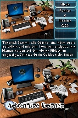 Das gesamte Spielprinzip wurde einsteigerfreundlicher gestaltet. Direkt bei der Untersuchung der Tatorte fällt dem Spieler im oberen Screen, der den gesamten Raum zeigt, eine Liste mit allen, im unteren Bildschirm zu findenden Gegenständen auf, wie man sie aus Wimmelbild-Spielen kennt. Der Kontext zur Handlung bleibt dabei aber gewahrt, denn Nicole benötigt alle gefundenen Sachen später als Beweise oder für die Lösung von Rätseln, eine Suche nach sinnlosem Gerümpel bleibt uns also erspart. Dementsprechend füllt sich das Inventar am unteren Bildschirmrand auch recht schnell. Unübersichtlich wird es dennoch nicht, denn in den recht kurzen Kapiteln sammeln sich nie wirklich viele Items an.