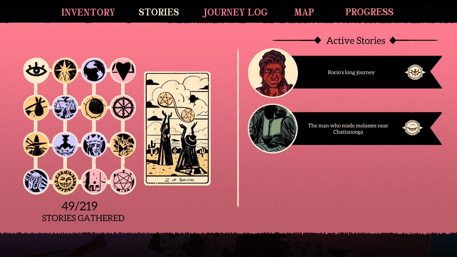 Besagte Geschichten machen einen Teil des Spiels zum spannenden Visual Novel mit abstrusen, berührenden und auch traurigen Momenten. Wir wandern durch die USA und sammeln solche Erlebnisse: 219 kleinen Geschichten und jeweils drei Kapiteln von 16 Hauptcharakteren kann man auf Englisch lauschen und sogar auf Deutsch lesen. Die Größe wird durch die Wanderung zu Fuß, als Autostopper oder per Zug erst richtig bewusst. Legal oder illegal ist uns vorbehalten und hat auch Konsequenzen.