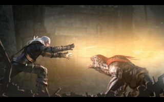 Das Spiel beginnt mit einem grandiosen Intro. Eine mittelalterliche Burg am Wasser, das in der untergehenden Sonne glitzert, erscheint. Dazu erklingt das Voice-Over eines Erzählers, der vom Hexer Geralt von Riva berichtet, einem professionellen Ungeheuertöter. Kurze Zeit später wird klar, dass Geralt sein Handwerk gelernt hat: Ein filmreifes Intro schildet den langen, spektakulären Kampf zwischen Geralt und einer Striege, einer Frau, die durch einen Fluch in ein Monster verwandelt wurde.
